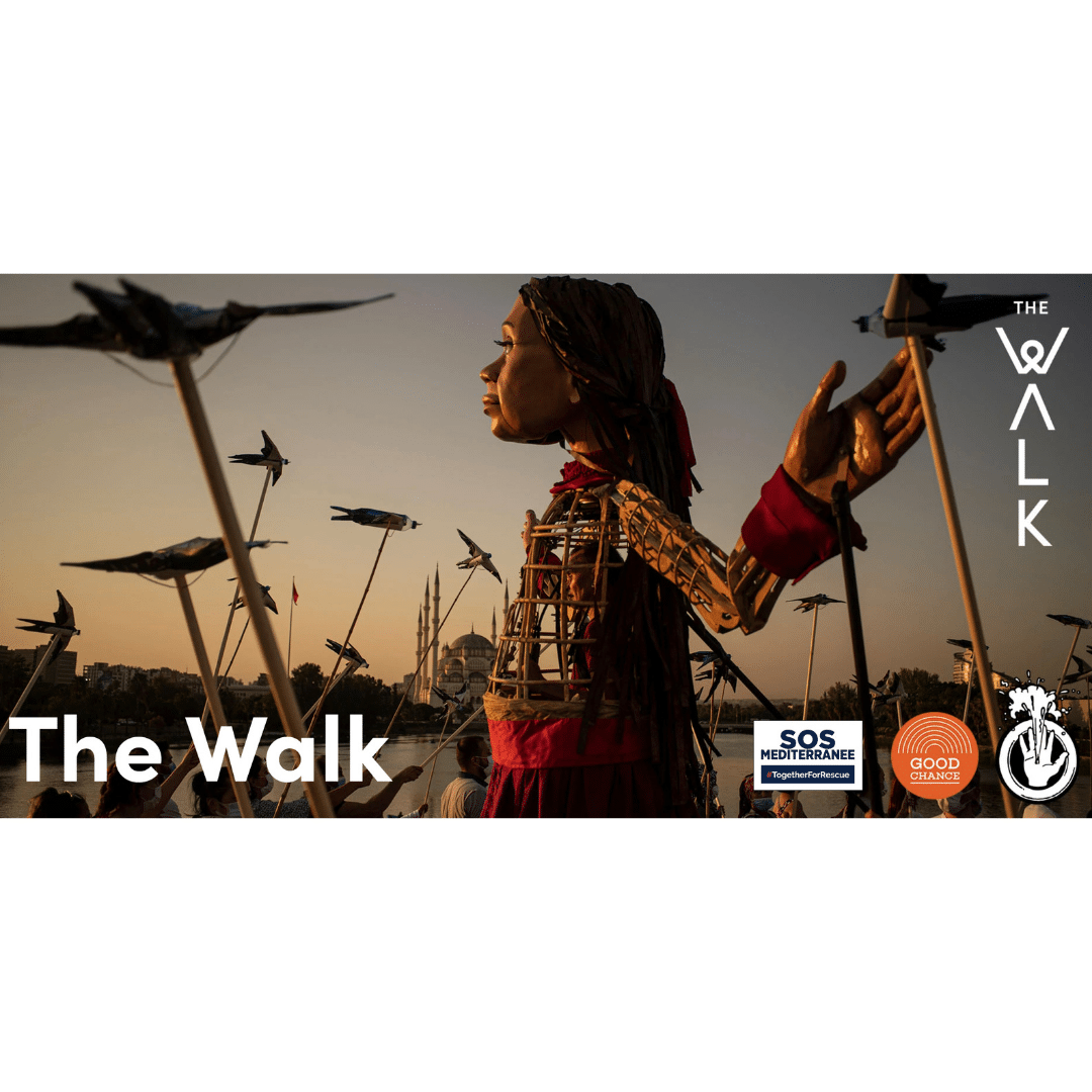 Au cœur du projet The Walk se trouve « Little Amal », une marionnette de 3,5 mètres de haut à l’effigie d’une jeune fille réfugiée. Représentant tous les enfants déplacés, dont beaucoup sont séparés de leur famille, « Little Amal » parcourra plus de 8 000 km de la frontière Syro-Turque au Royaume-Uni, incarnant le message urgent : « Ne nous oubliez pas ».
