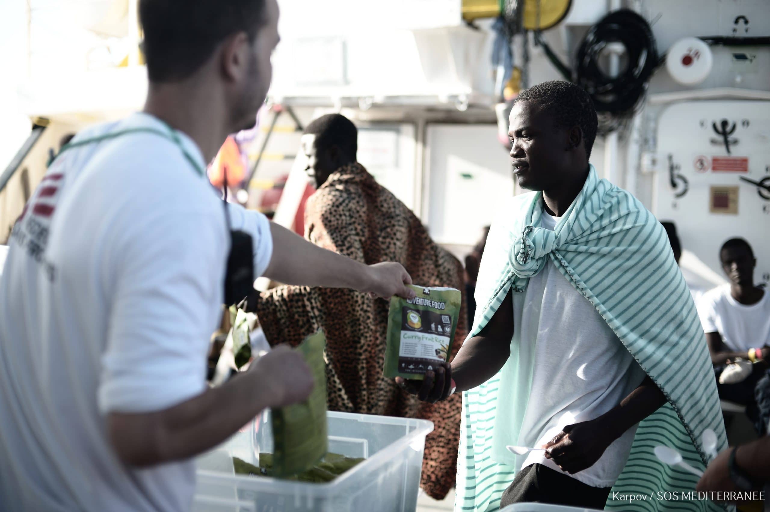 Des vivres ont d’abord été acheminées par un navire de la marine maltaise lundi en fin d’après-midi : 950 bouteilles d’eau ainsi que 800 snacks et 800 portions de nouilles. Puis un second ravitaillement de produits alimentaires et de biens de première nécessité a été réalisé ce mardi matin par les autorités maritimes italiennes qui ont livré 200 kg d’oranges, 2 400 petits pains, 100 boîtes de thé, 50 kg de sucre, mais aussi des couvertures, des chapeaux et des chaussettes.