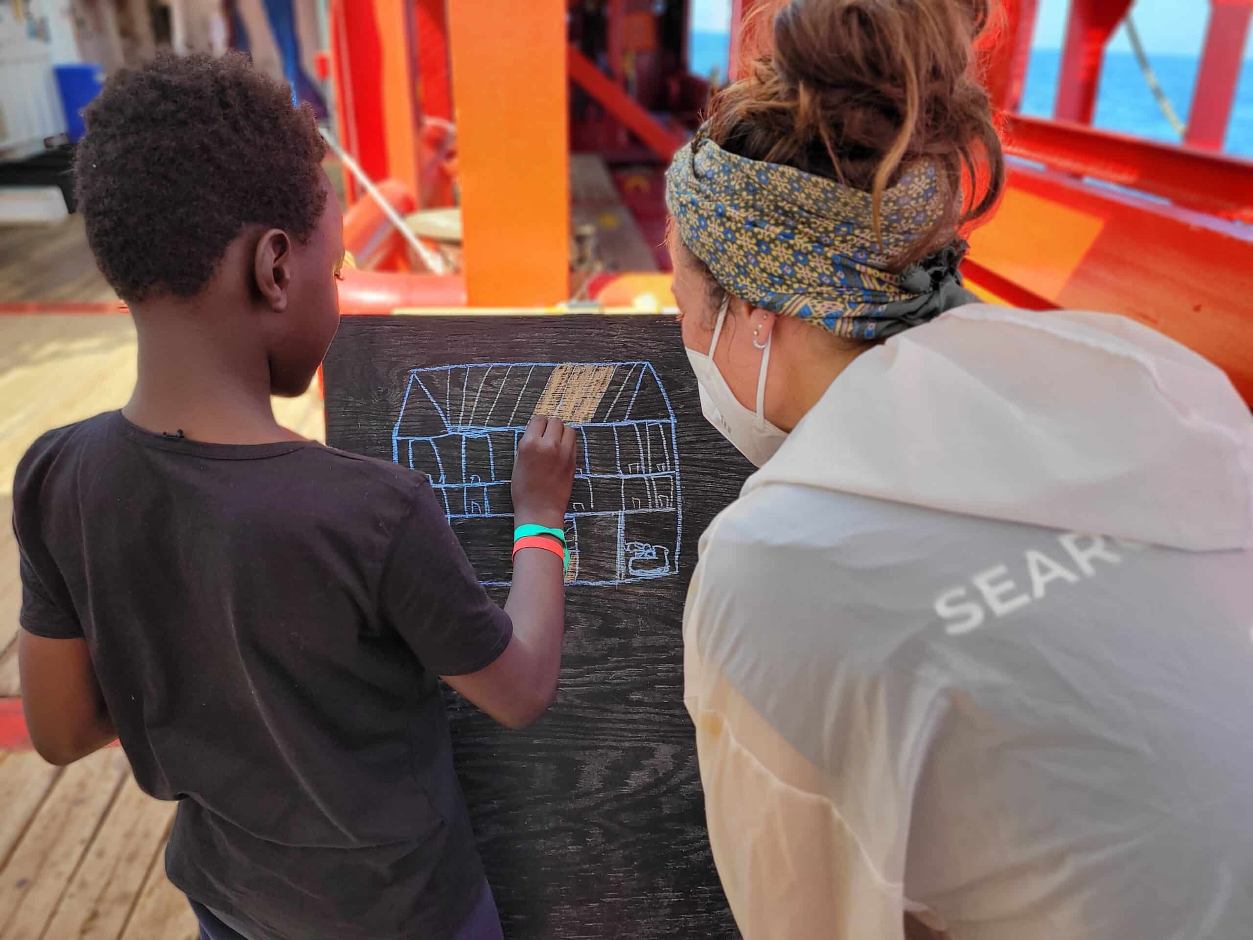 Pourtant, à bord de l’Ocean Viking, il a commencé à s’ouvrir. Peu à peu, il s’est mis à jouer. Tout seul au début. Puis avec d’autres adultes autour de lui. Et finalement avec d’autres enfants secourus depuis d’autres fragiles embarcations. Après quelques jours, il a osé parler et être entendu. Il a commencé à poser des questions, à exprimer des désirs. À sourire. Une fois par jour, puis deux fois par jour, et enfin de nombreuses fois, chaque jour.