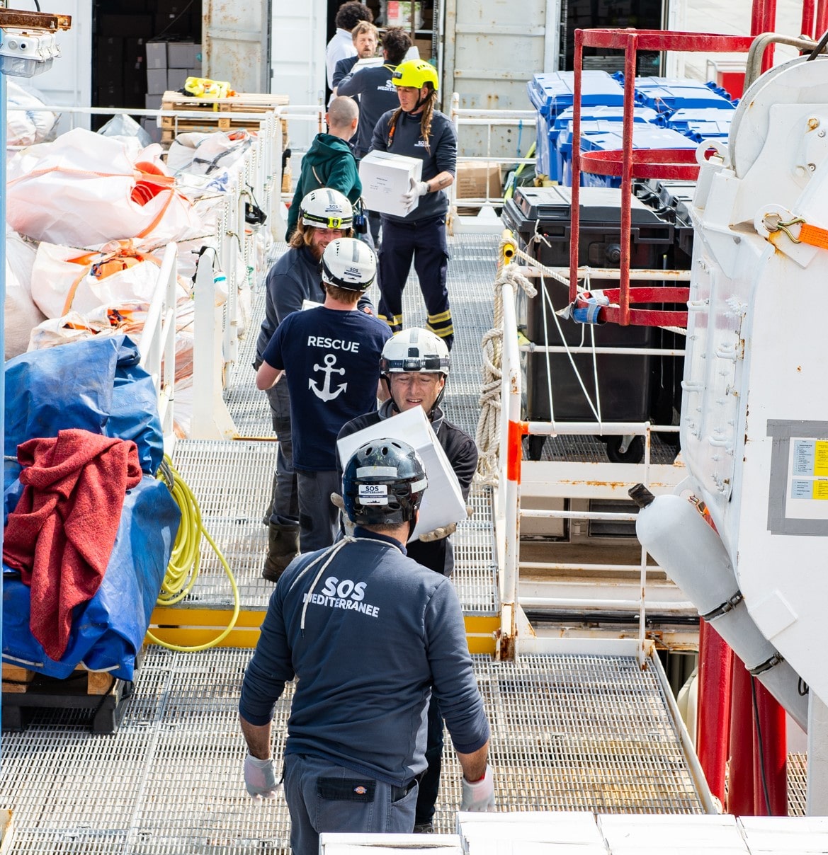 Cette photo de Fabian Mondl, photographe à bord de l’Ocean Viking, a été prise le 23 mars dernier au port de Marseille, où le navire est amarré. Après avoir débarqué, fin février, 276 rescapés au port de Pozzallo, et suite à 14 jours de quarantaine au large de la Sicile, les équipes de recherche et de sauvetage de SOS MEDITERRANEE sont restées mobilisées à bord de l’Ocean Viking durant plusieurs semaines dans l’espoir de pouvoir repartir au plus vite, dès que le contexte exceptionnel de la pandémie du COVID-19 le permettrait. Les marins-sauveteurs se sont attelés au réapprovisionnement du bateau ainsi qu’à la réalisation de travaux d’entretien des équipements et du matériel de sauvetage à bord tandis que les équipes à terre adaptaient notre protocole opérationnel aux nouveaux enjeux qui se posent au monde maritime. Ensemble, nous veillons à ce que l’Ocean Viking soit opérationnel pour repartir sauver des vies en Méditerranée dès que possible.