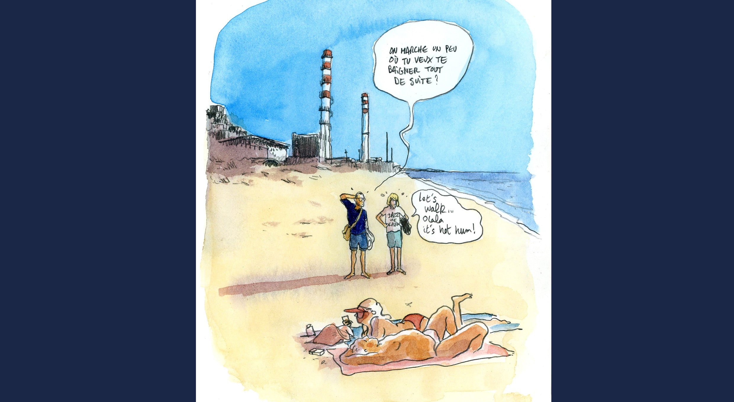 Je m’amuse des poses que prennent les gens alanguis au soleil de midi. « Les gens ne se tiennent pas de la même manière suivant les pays. » Clairement nos corps disent que nous ne sommes pas d’ici. « On marche un peu ou tu veux te baigner tout de suite ? »