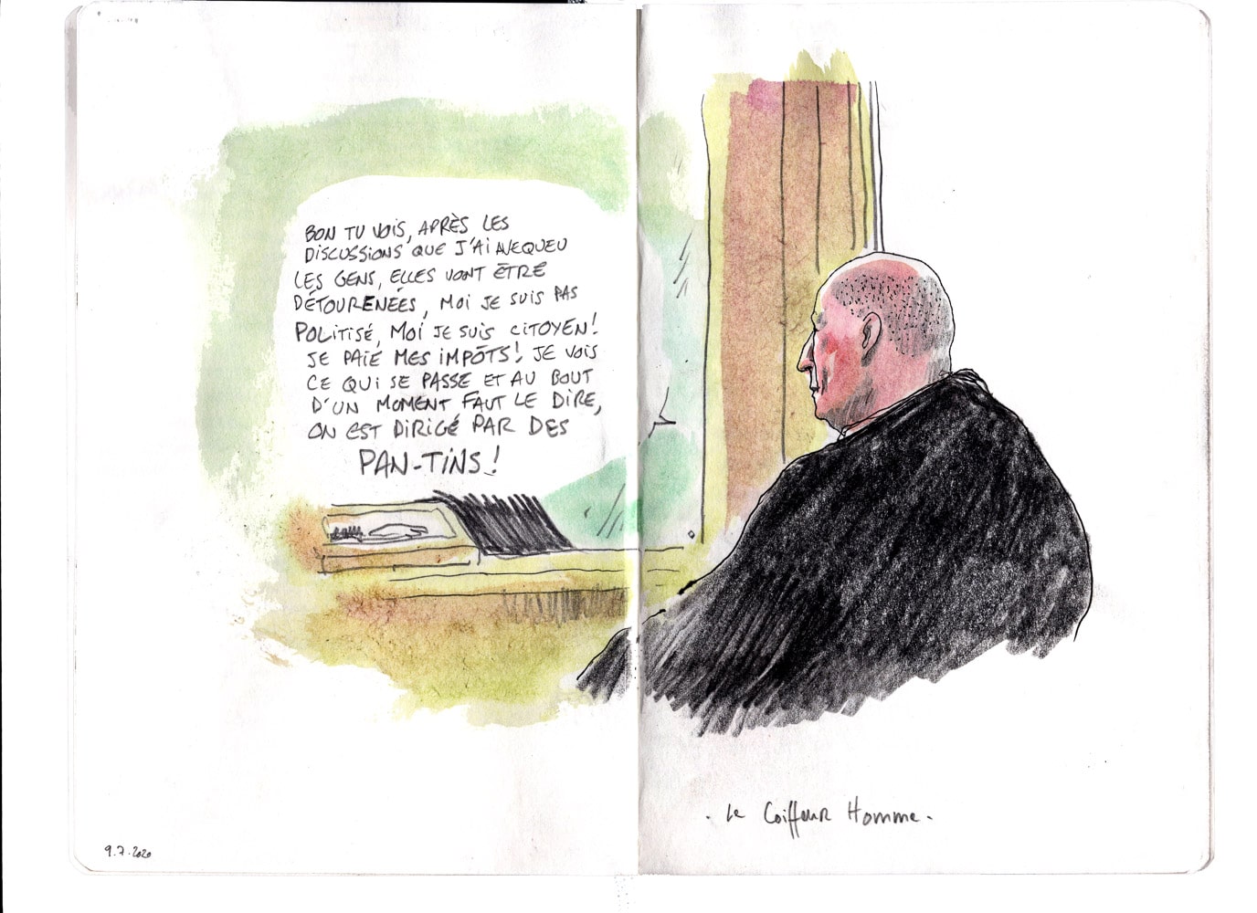 « Ah ! Ça le fait rire le Mônsieur, mais c’est vrai ! Moi je suis dans la sécurité, j’en ai vu PASser ! Un m’ment ça suffit ! Moi je paie des imPÔts ! Et ben eux, les yeux dans les yeux qu’ils viennent me dire qu’ils ont pas de comptes en Suisse ! Comme il avait dit Coluche, « j’arrêterai la politique quand ils arrêteront de me faire rire ! » Y a bientôt cinQUANte ans, t’imagines ! Il s’était présenTÉ… donc c’est plus d’actualité, c’est hisTOrique bientôt. Là là, il a dit le nouveau premier ministre, Castex, Cache sexe, ahah !..