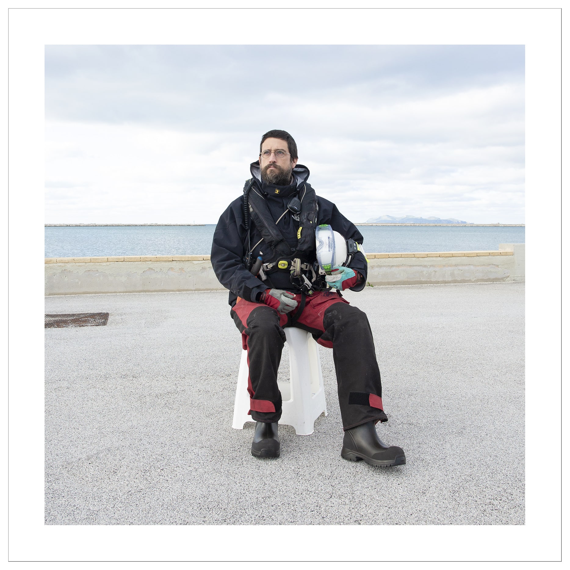 « J’ai assisté l’une des femmes enceintes, il y avait aussi un bébé de trois mois, mais je ne l’ai pas vu à ce moment-là. J’ai été marqué par la capacité de cette femme à monter debout sur le boudin du pneumatique en détresse et à attraper nos bras. Je me suis fait la réflexion que si elle glissait, si elle tombait, j’allais avoir beaucoup de mal à la retenir. Elle a sauté à bord du semi-rigide et quand nous sommes arrivés au débarcadère de l’Ocean Viking, elle a grimpé toute seule à l’échelle. Je me rappelle lui avoir dit « you are very brave » ou quelque chose comme ça, une phrase complètement inutile, je pense a posteriori.