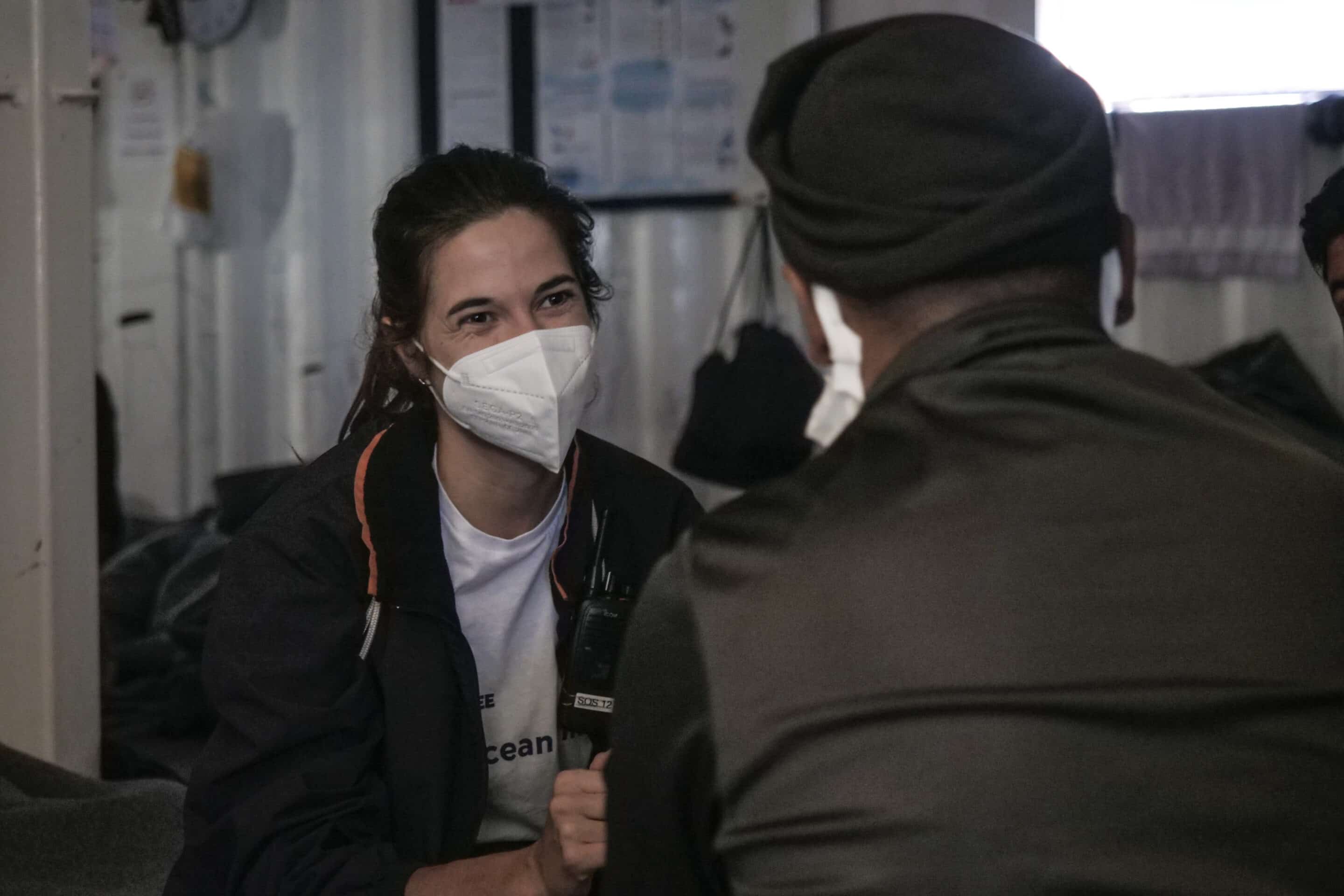 Marylène est montée à bord de l’Ocean Viking comme sage-femme à plusieurs reprises. À ce titre, elle est responsable de l’abri des femmes, « une sorte de bulle protectrice » essentielle pour les femmes et les enfants de moins de douze ans qui ont traversé de nombreuses épreuves.
