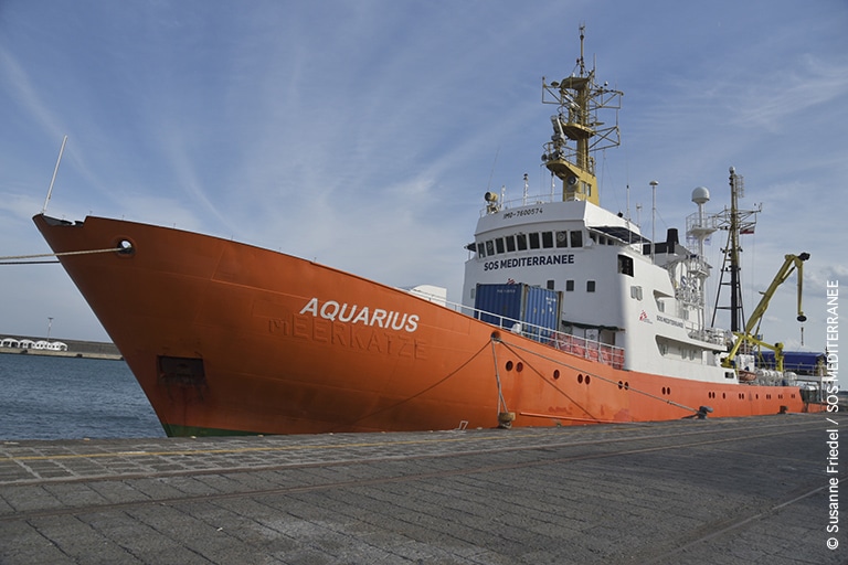 Ce soir-là pour l’Aquarius, pas de flonflon ni de champagne, pas de guirlandes ni de cotillons, juste un bout de quai austère avec à peine assez de lumière pour embarquer l’avitaillement, débarquer les équipes de secours et celles de MSF, et accueillir la relève. Pour l’Aquarius, pas de souvenir de fête, ni de bal, ni de concert, ni de festin, juste le souvenir d’une succession de jours et de nuits d’attente, ballotté par la mer, prêt à répondre aux appels de détresse.