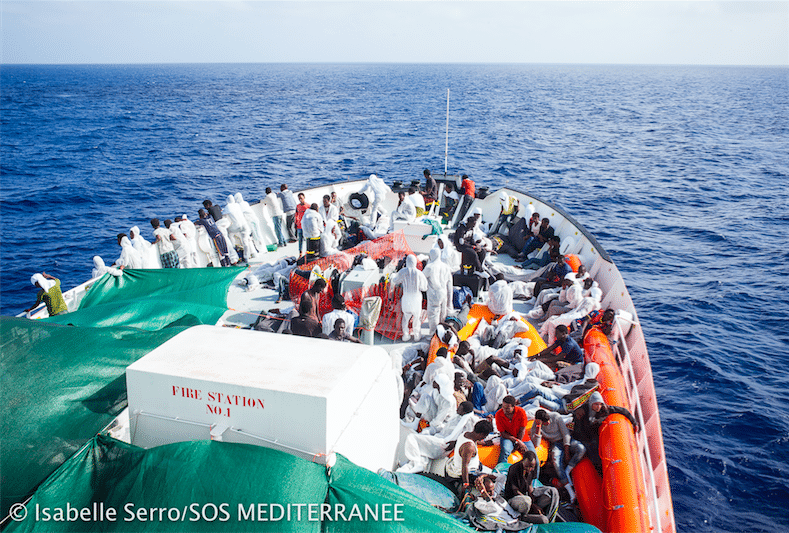 L’Aquarius est donc bondé, avec 551 personnes à bord. Chaque centimètre du pont est utilisé pour s’asseoir, s’allonger, se reposer, dormir. Ces hommes, ces femmes et ces enfants sont avec nous pour deux jours et deux nuits. Ils peuvent désormais prendre une douche, un petit déjeuner, un déjeuner et un diner, avoir accès à des sanitaires séparés pour hommes et femmes, et notre partenaire Médecins Sans Frontières (MSF) offre soutien psychologique et aide médicale.