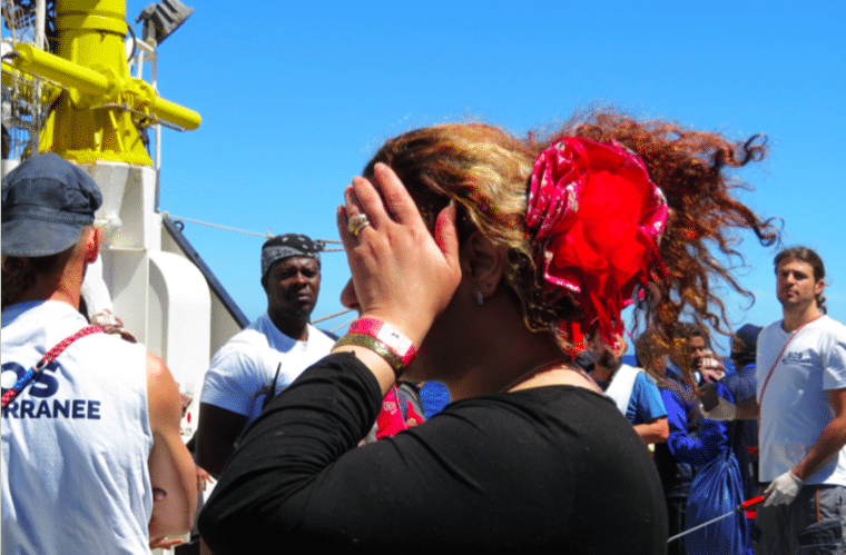 L’une d’elle s’approche de moi et me dit, un peu embarrassée : « J’avais très peur de la mer, je n’étais pas sûre de vouloir embarquer mais je voulais rester avec mes sœurs et de toutes façons je n’avais pas le choix. Tôt ou tard, en Libye, je serais morte. Une autre de nos sœurs devait venir aussi mais deux jours avant le départ, alors qu’elle marchait dans la rue, une voiture s’est approchée, des hommes armés sont descendus et l’ont enlevée. Nous n’avons plus de nouvelle depuis… »