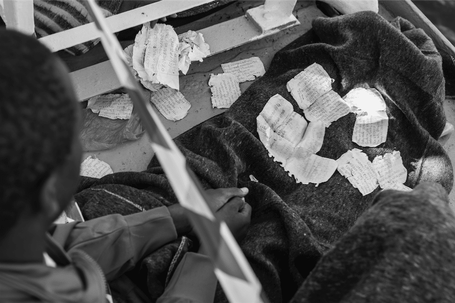 Il m’a fallu plusieurs mois pour économiser. Trois de mes amis ont ajouté un peu d’argent. J’avais 505 dinars en tout. J’étais tellement désespéré que j’ai supplié le passeur et je lui ai promis que je paierais le reste une fois que je serais hors de Libye. Je voulais juste quitter cet endroit pour de bon. Il a eu pitié de moi et m’a dit de le rejoindre sur la plage la nuit même. S’il y avait assez de place, il m’enverrait sur le bateau.